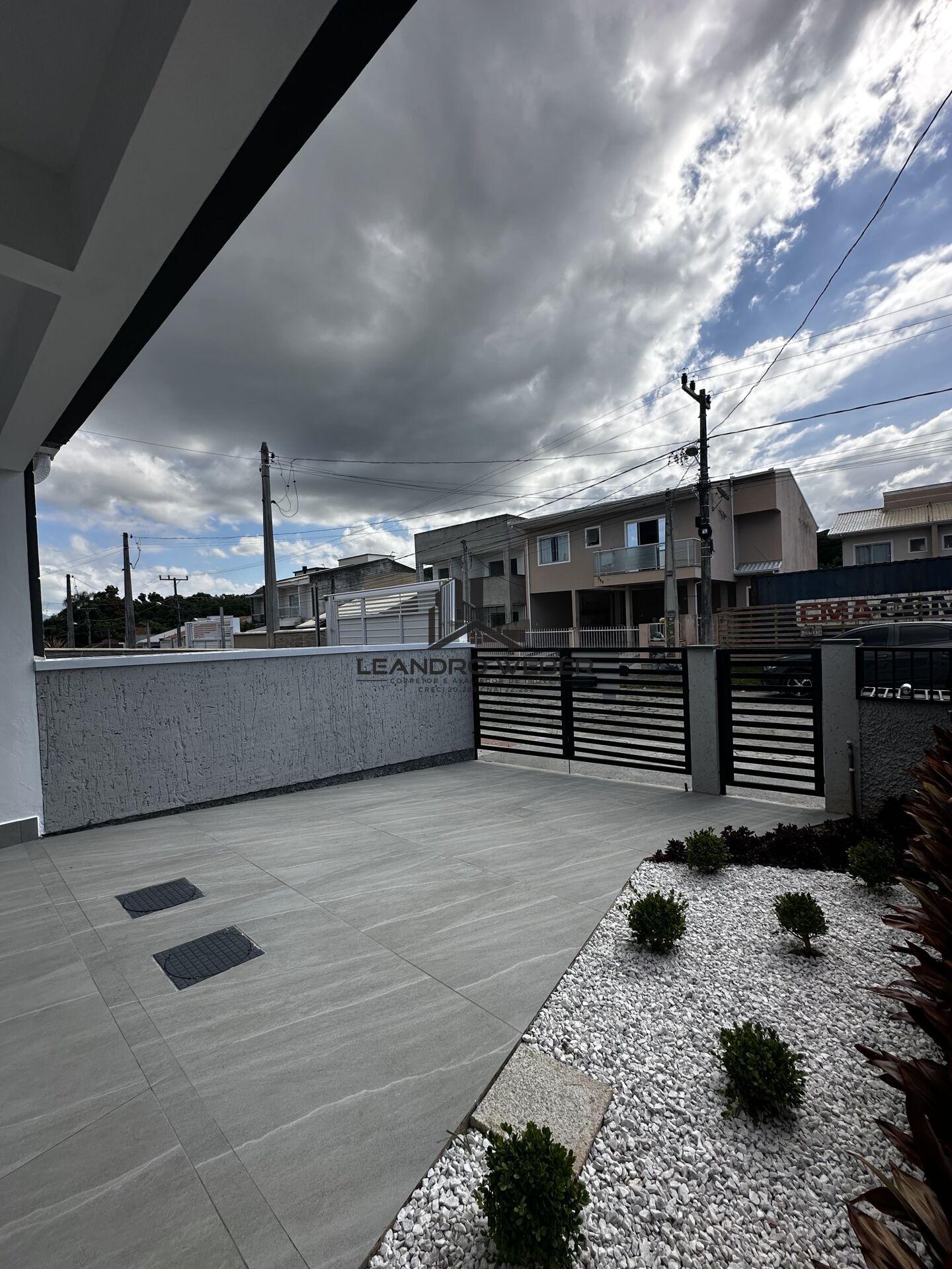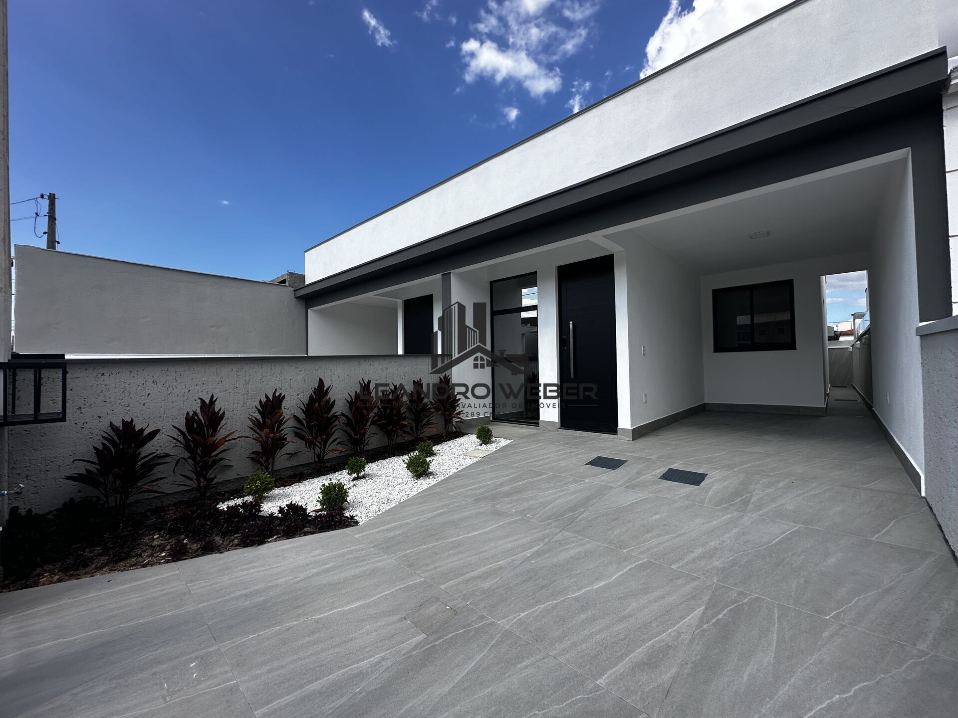 Na parte externa, você conta com área de serviço, além de um agradável pátio frontal com paisagismo, ideal para quem valoriza um ambiente mais acolhedor e bem cuidado. A casa já possui energia elétrica e água instaladas, além de esquadrias em alumínio, telhado embutido e fechadura eletrônica, garantindo mais segurança e praticidade.